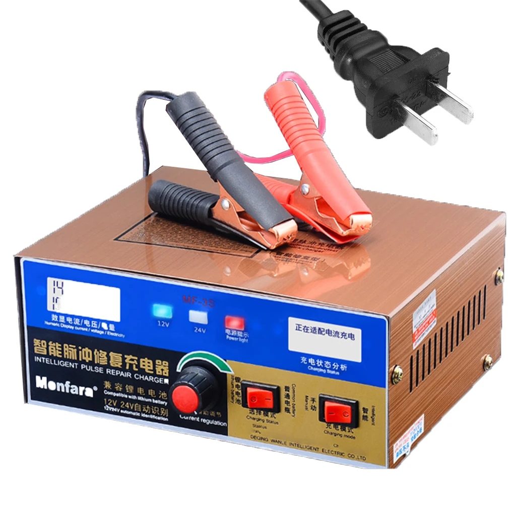 - Car Battery Charger 12V 24V for E-bike Motorcycle Pulse Repair Universal 12V Battery Charger EU Plug