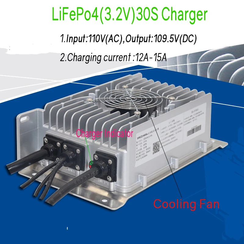 - شاحن Lifepo4 96 فولت 30 ثانية مدخل 110 فولت مخرج 109.5 فولت 15A-20A لبطارية Lifepo4 3.2 فولت 30 سلسلة دراجة كهربائية EV رافعة شوكية مخزنة